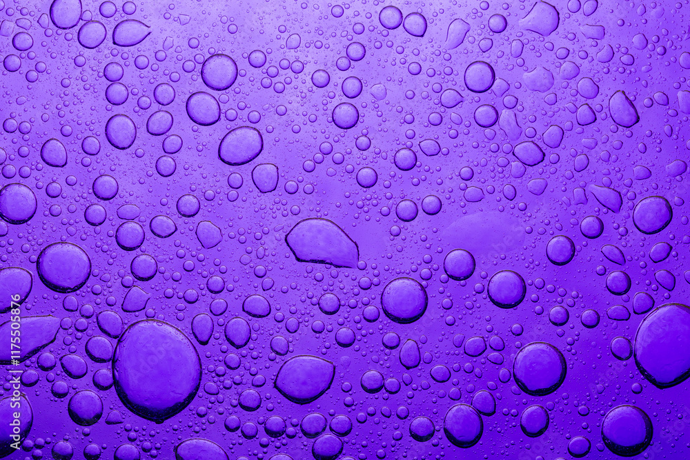 Close-up of purple bubble texture,oil with bubbles on Violet background. Abstract space purple violet background. Soft selective focus. macro of oil drops on water surface.