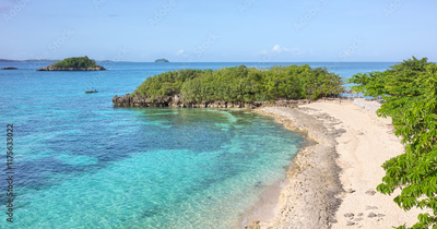 Panoramic photo of a beach on Malapascua Island, Philippines.