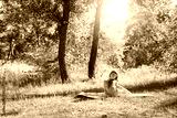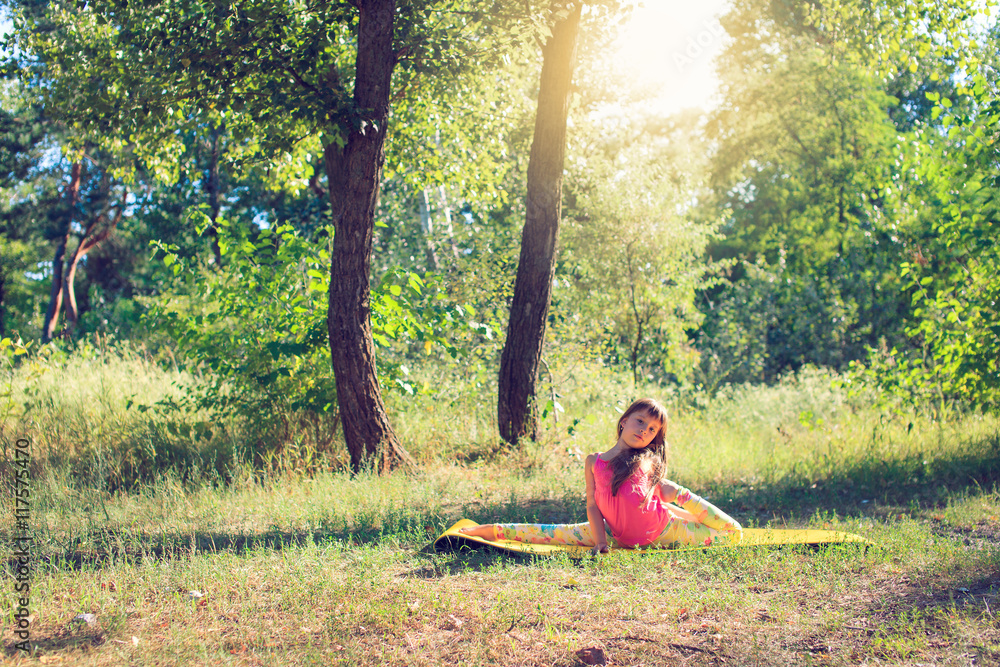 Teenager doing yoga and relaxing by siting in a grass in a park