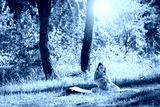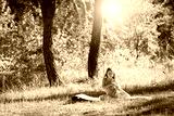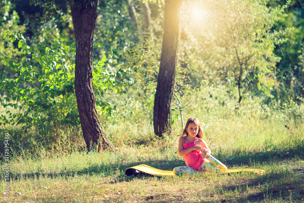 Teenager doing yoga and relaxing by siting in a grass in a park