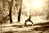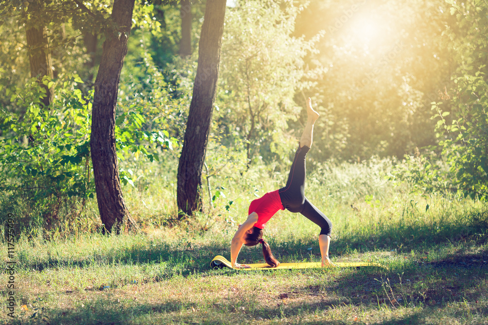 Teenager doing yoga and relaxing by siting in a grass in a park
