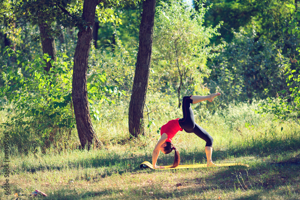 Teenager doing yoga and relaxing by siting in a grass in a park