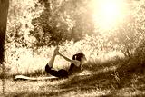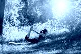 Teenager doing yoga and relaxing by siting in a grass in a park