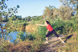 Teenager doing yoga and relaxing by siting in a grass in a park