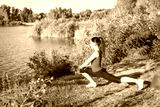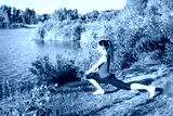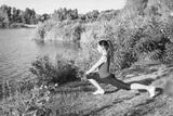 Teenager doing yoga and relaxing by siting in a grass in a park