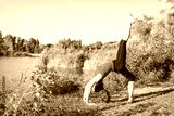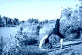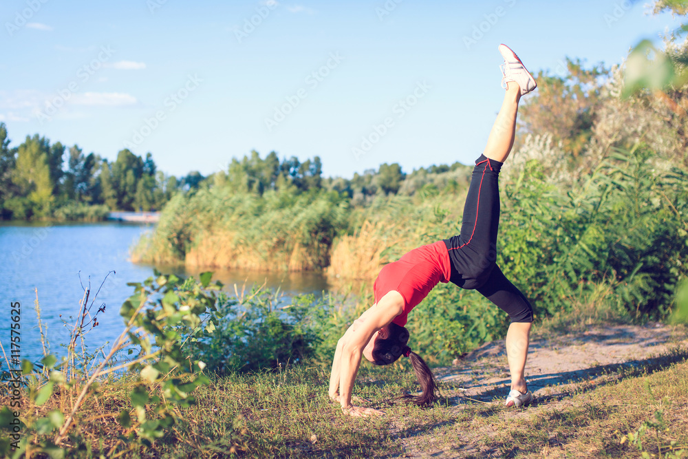 Teenager doing yoga and relaxing by siting in a grass in a park
