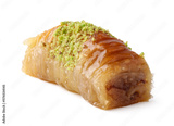 Delicious dessert featuring baklava with pistachio topping, highlighting traditional Turkish flavors