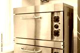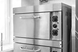 Modern stainless steel oven in a bright, contemporary kitchen with dual cooking compartments