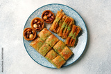 Delicious assortment of traditional Middle Eastern sweets served on a decorative plate