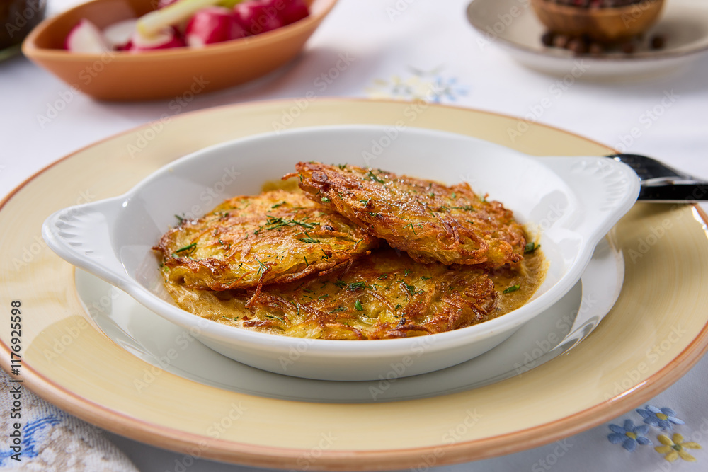 Crispy Golden Potato Pancakes on Elegant Table Setting