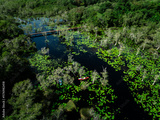 tourist paddle kayaking at wetland nature and green lotus swamp at red bridge Rayong botanic garden,