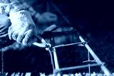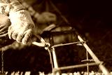 worker uses steel tying wire to fasten steel rods to reinforcement bars.