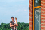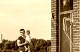 The father and the little daughter enjoy beauty of the nature.