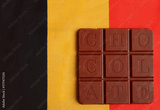 chocolate with the text chocolate on the flag of Belgium. The concept of traditional products of Belgium, chocolate
