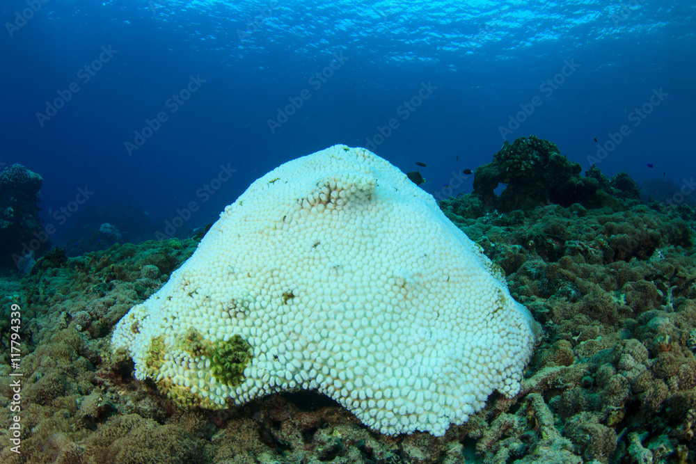 Coral bleaching. Dead coral because climate change, global warming, rising sea temperatures, pollution.