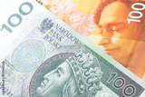 Polish 100 zloty bill and Israeli new 100 shekel banknotes. International trade concept