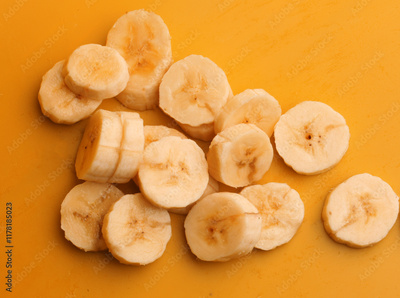 sliced bananas on yellow background