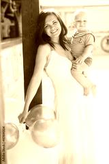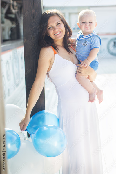 Pretty mom and son with balloons