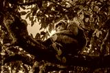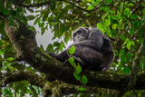 Pan-hooting chimpanzee (Pan troglodytes) in natural habitat