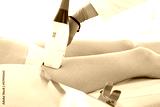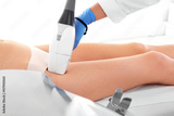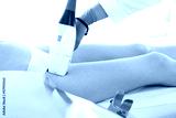 Laserowa depilacja. Kobieta na zabiegu depilacji laserowej ud i okolic bikini