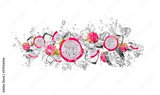 Dragon fruit in water splash on white background