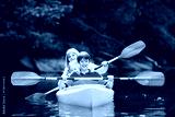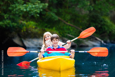 Family enjoying kayak ride on a river