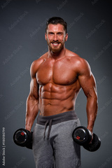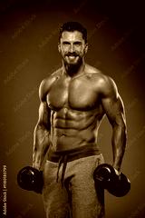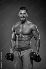 Man Lifting Weights. Handsome Men Exercise With Dumbbells