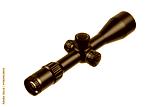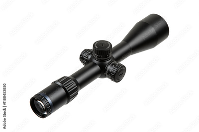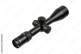 A high-quality black rifle scope with multiple adjustment knobs, precision optics, and a sleek design