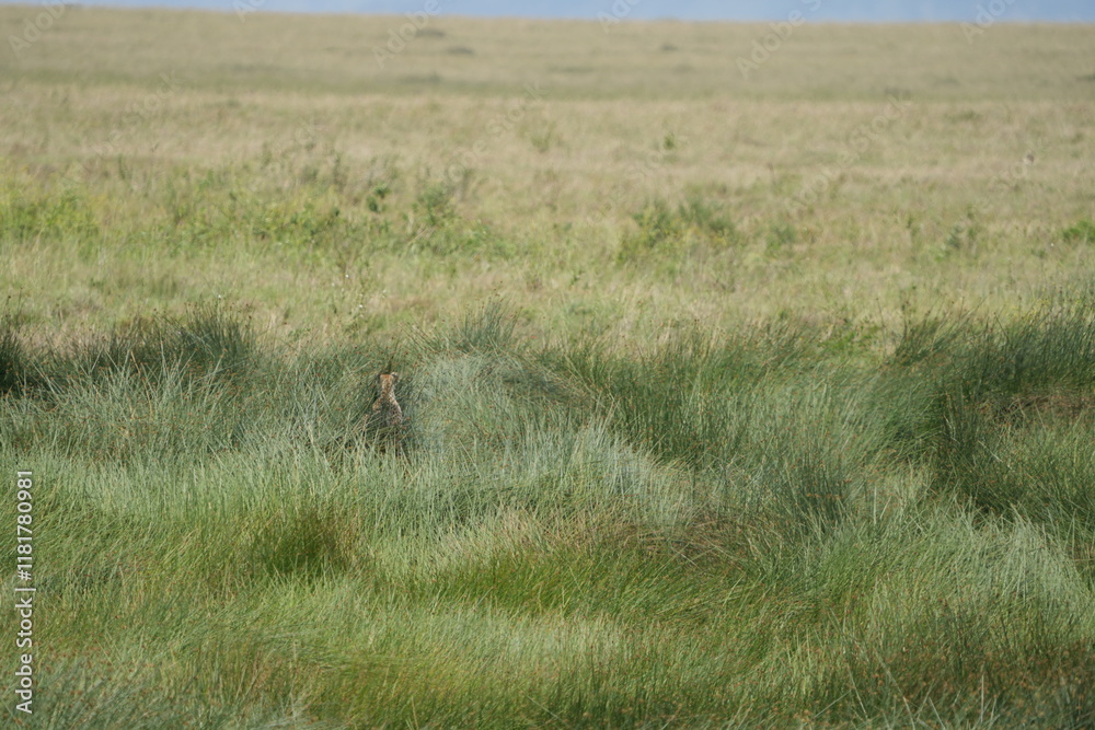 cheetah mother near her den in the high grass of the serengeti national park tanzania