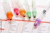Blutuntersuchung, Blutproben auf einem Laborformular
