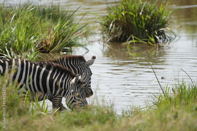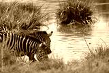 Zebras at the Waterhole – Striped Serenity drinking water with the herd on the African Plains