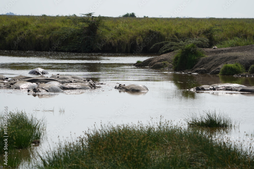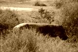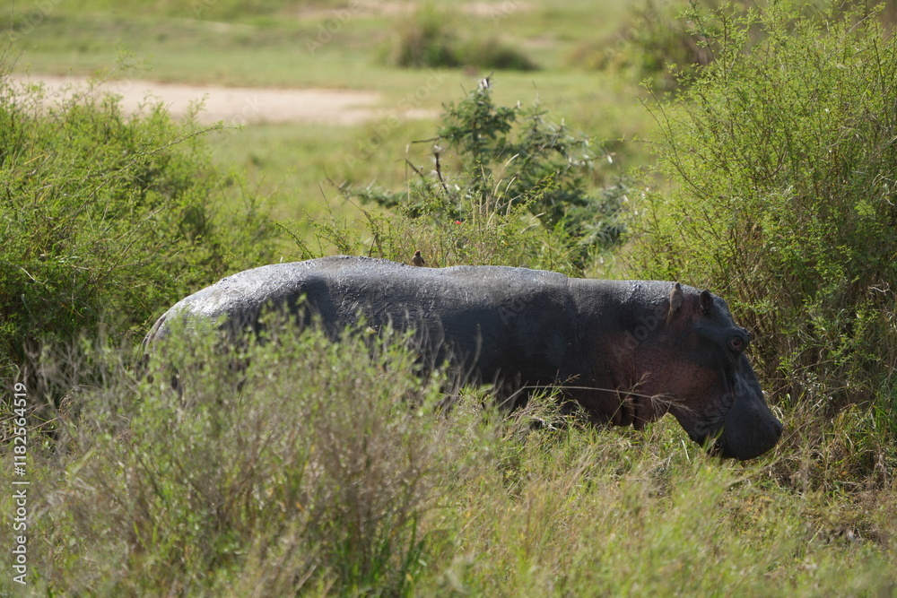 Hippo on the Move – Sunlit Stroll Between Water Pools in the Serengeti