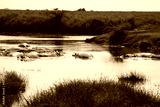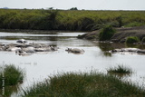 Hippos laying and chilling in the hippo pool in the serengeti national park in tanzania