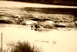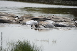 Hippos laying and chilling in the hippo pool in the serengeti national park in tanzania