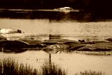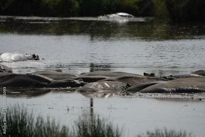 Hippos laying and chilling in the hippo pool in the serengeti national park in tanzania