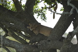 lioness chilling and laying in the tree in the serengeti national park tanzania, relaxed lion female
