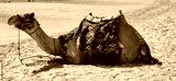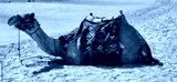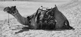 Camel Resting on Beach with Colorful Saddle in Scenic Coastal Landscape