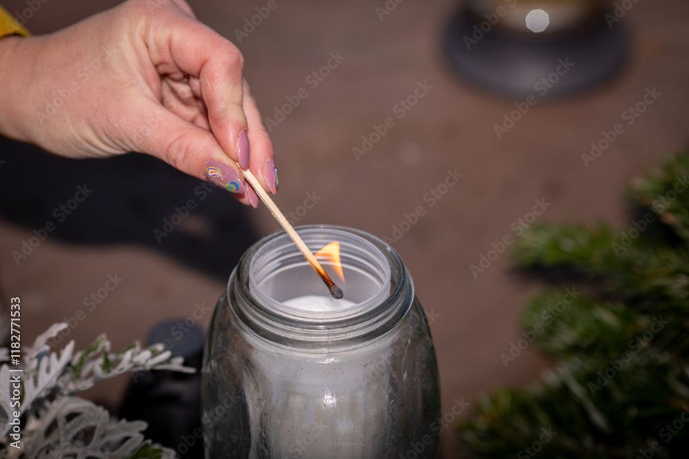 Lighting a Candle in a Serene Moment of Deep Reflection and Personal Contemplation