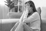Sad, unhappy. Alone asian young woman, girl expression face thinking about problem, difficulty, feeling failure and exhausted, suffering from loneliness, grief sorrow and bad relationship or break up.