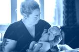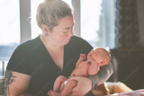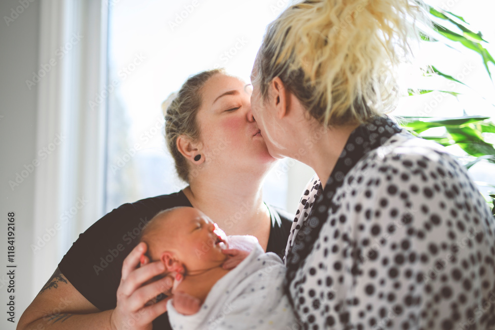 Happy lesbian woman with their little newbaby at home