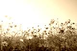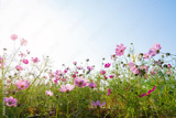 Pink cosmos flowers full blooming in summer garden,Field of cosmos flower on blue sky background.