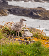 Herring Gull Chicks outside the nest on the island of Lunga, Inner hebrides, Scotland, UK