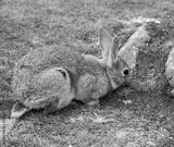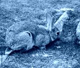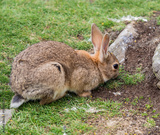 Wild rabbit grazing on grass on the island of Lunga, Inner Hebrides, Scotland, UK