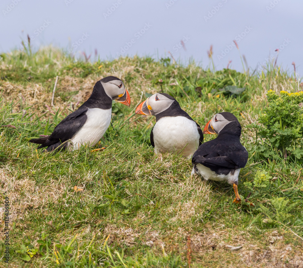 Atlantic puffins on the isle of Lunga, Inner Hebrides, Scotland, UK