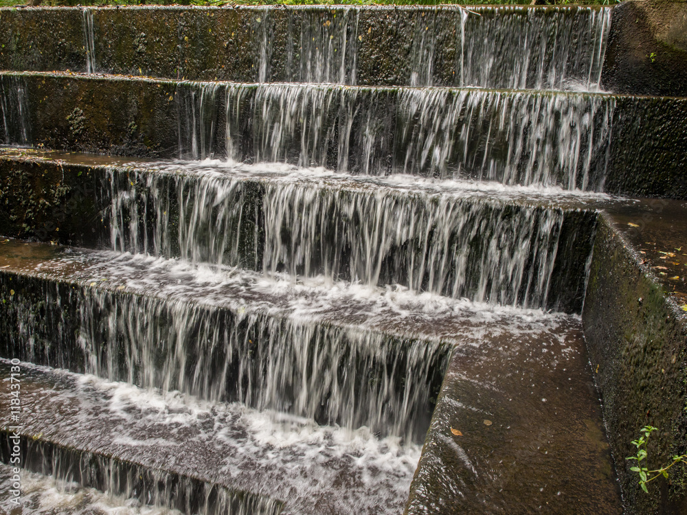 Munufacturered waterfall at Deep Hayes Country Park, Staffordshire, UK