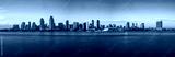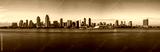 Panoramic view of San Diego's skyline at sunset, captured from Coronado Island with a long exposure, highlighting calm waters and city lights.