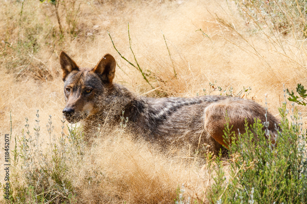 Canis lupus signatus. Lobo Ibérico tumbado.