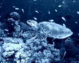 Hawksbill Turtle, Fairy Basslets and Scuba Diver
