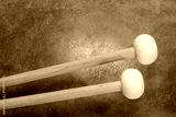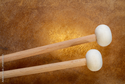 soft felt timpani mallets against backlit drum goat skin