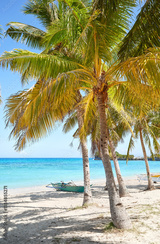 Coconut palm trees on a beautiful beach on Malapascua Island, Philippines.